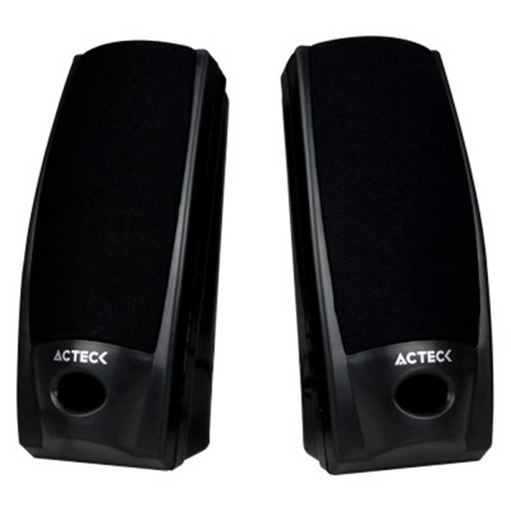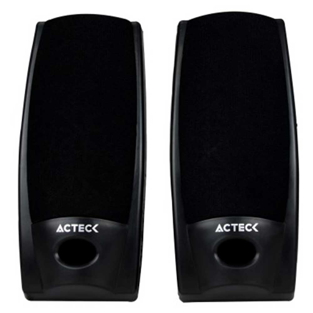 Par de bocinas MILTIMEDIA 2.0 AX-2500 ACTECK. Base escritorio. Control Escritorio. Plug Estéreo 3.5 m. Color Negro.